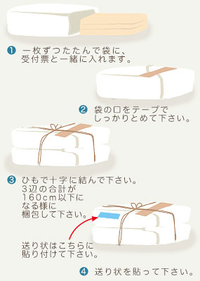 *羽毛や羊毛等で、傷の付いているお布団はクリーニングによって穴が開く場合がありますので、お引き受け出来ない場合がございます。